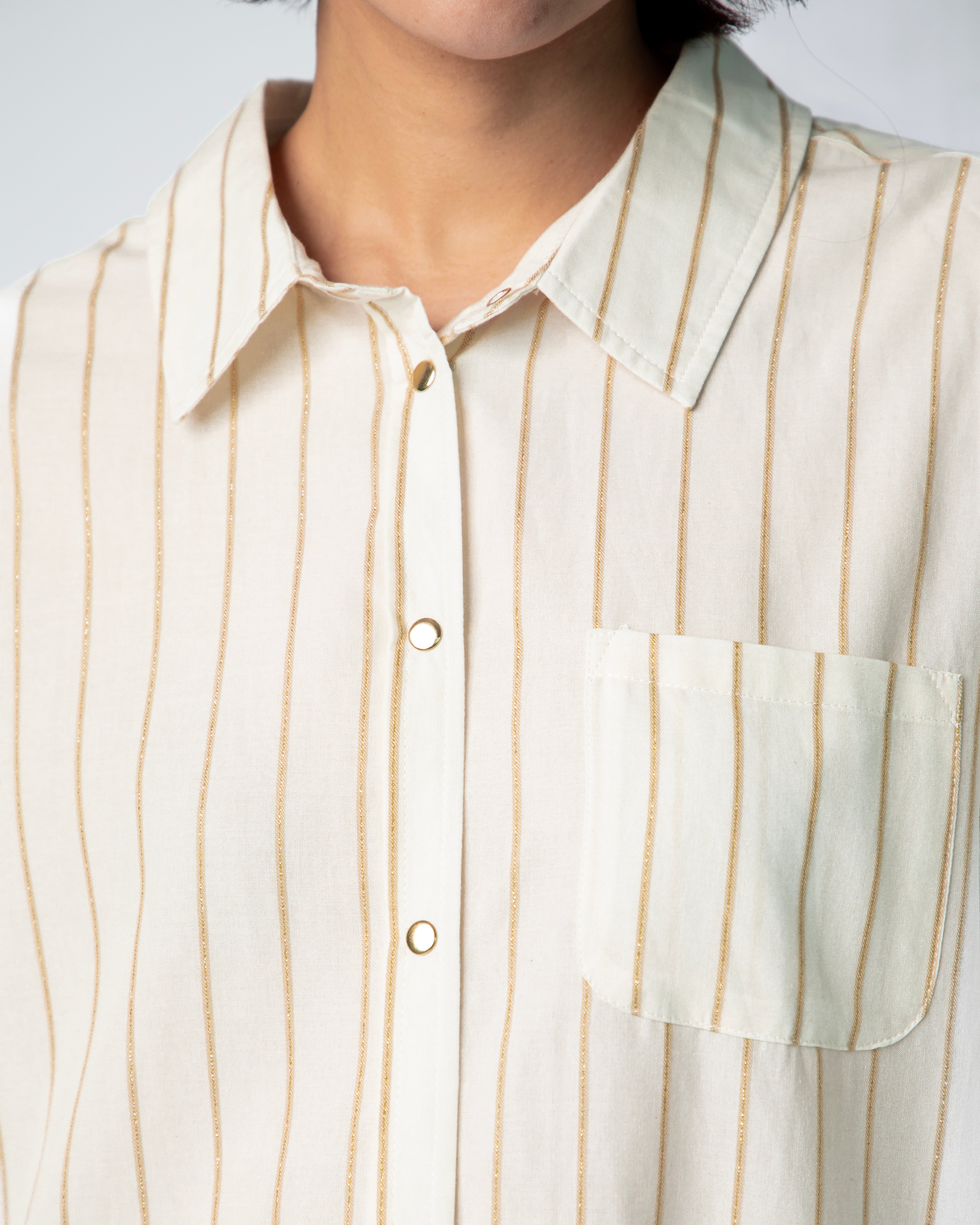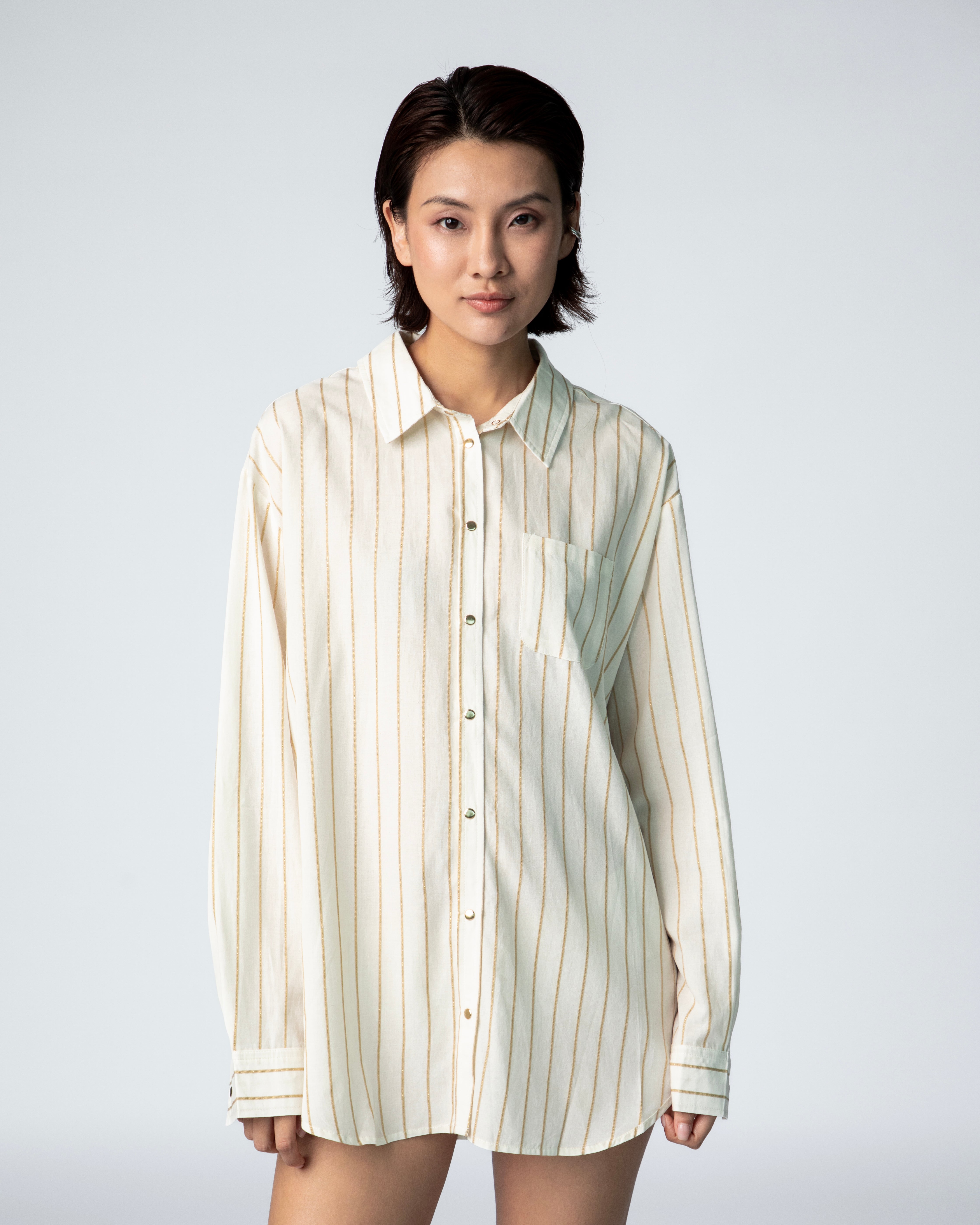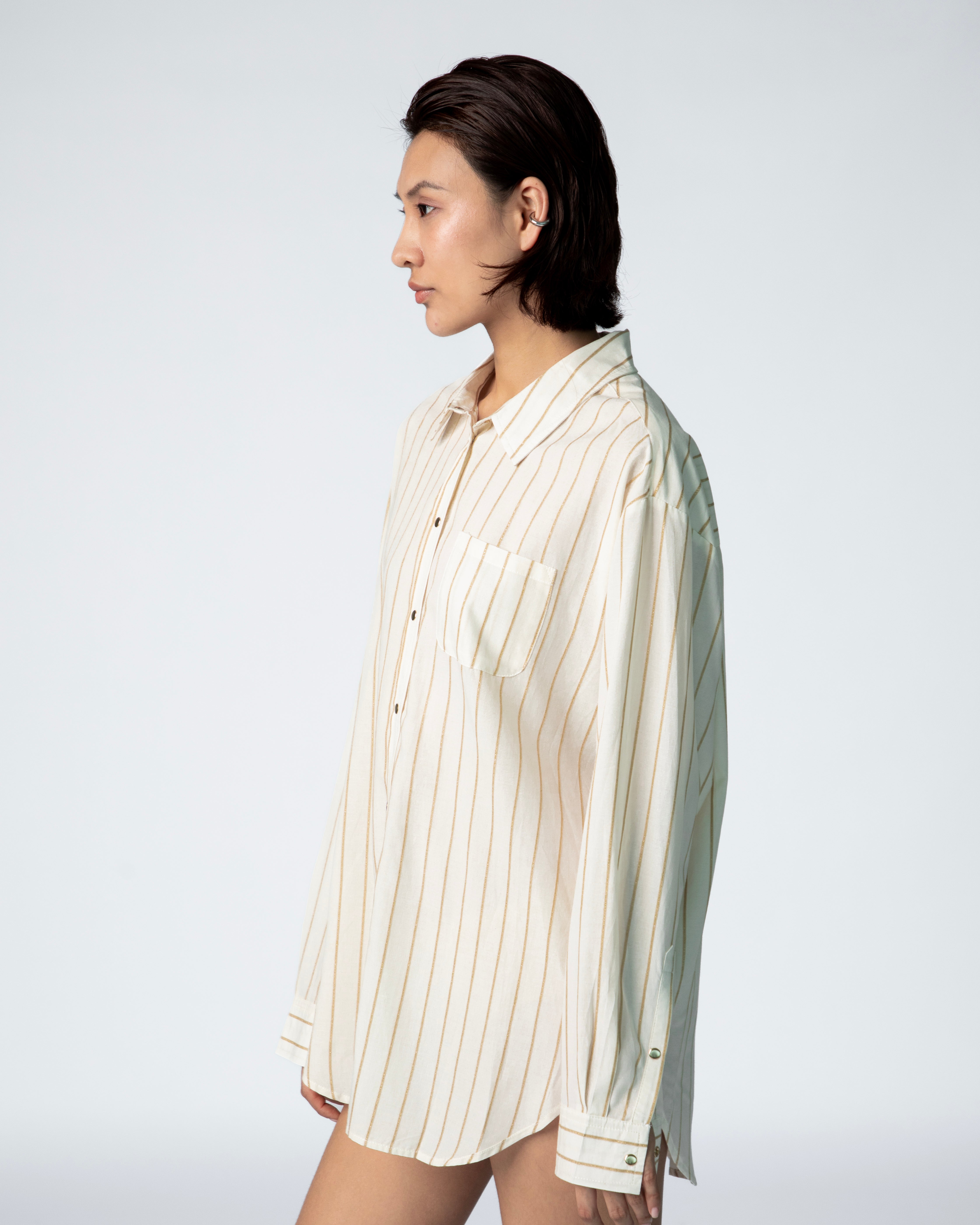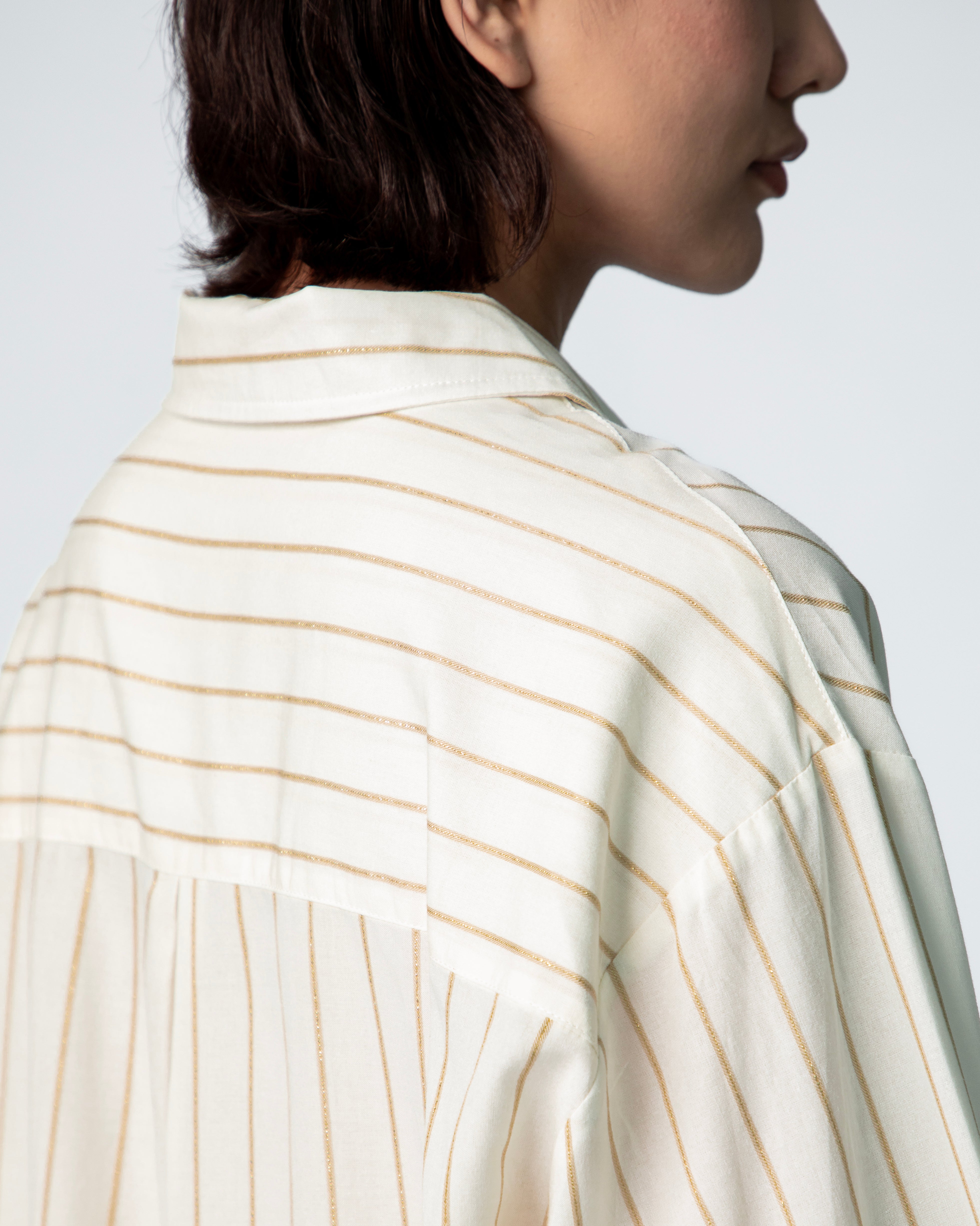 Jules Oversize Shirt - Jacquard Embroidery Gold Stripes