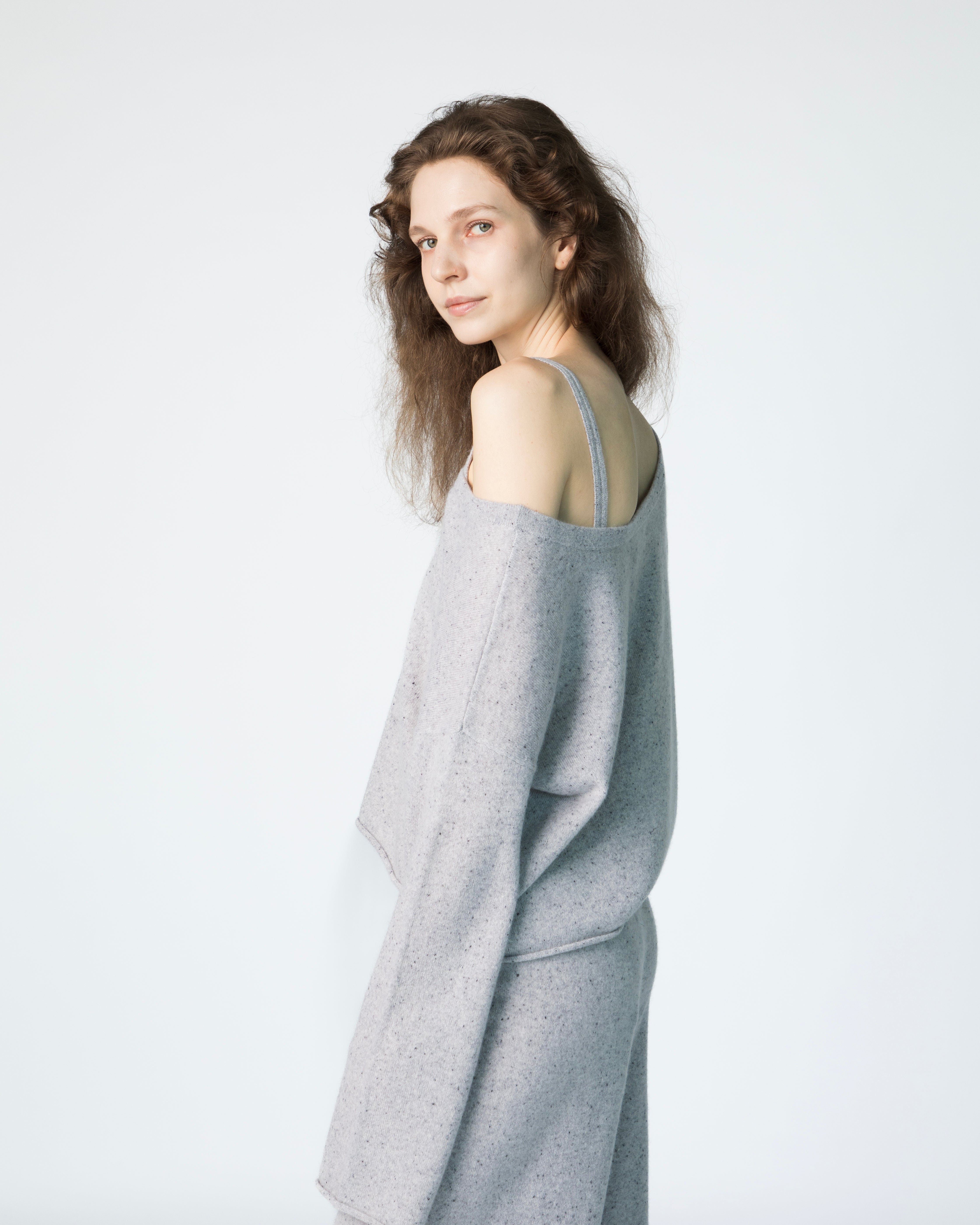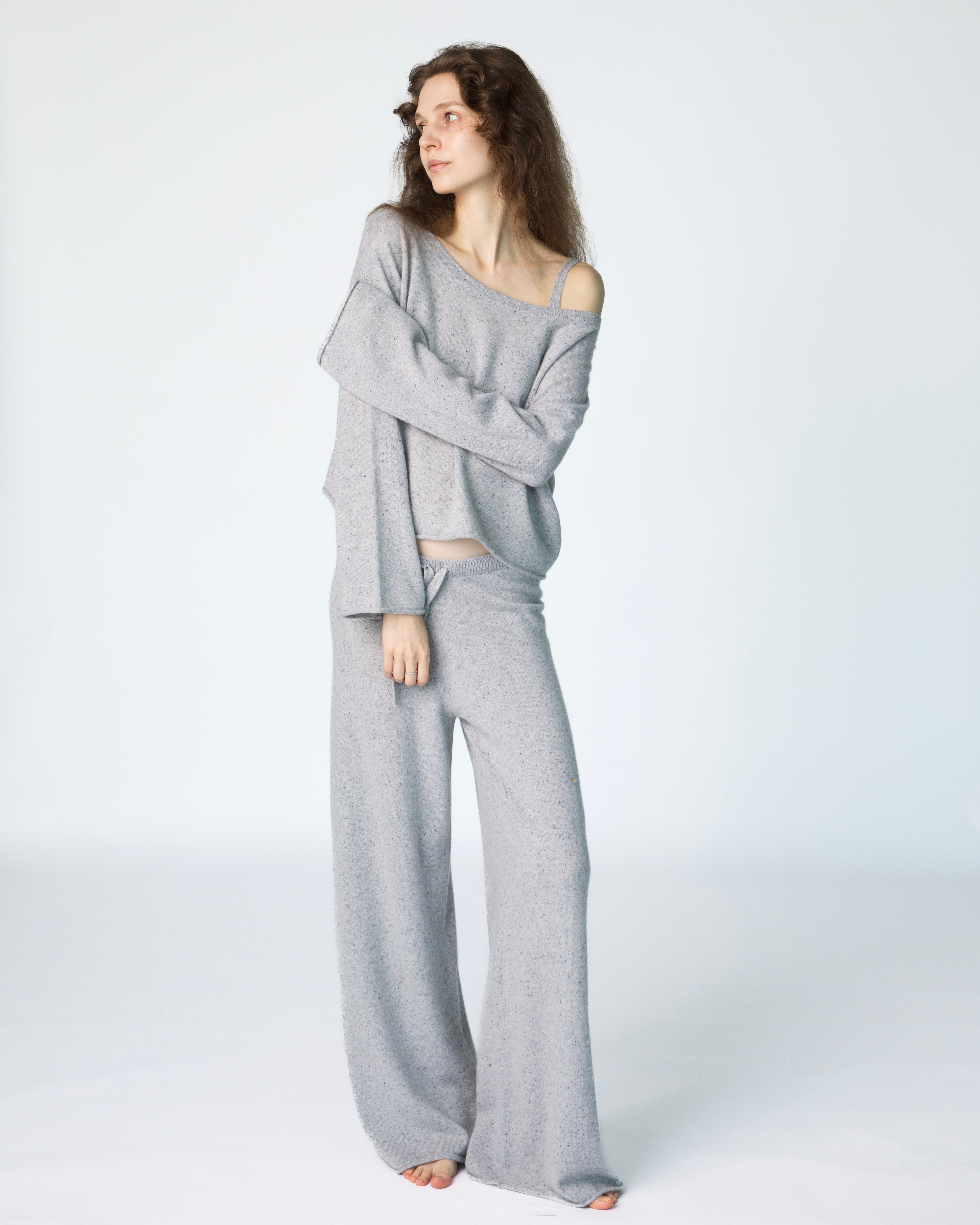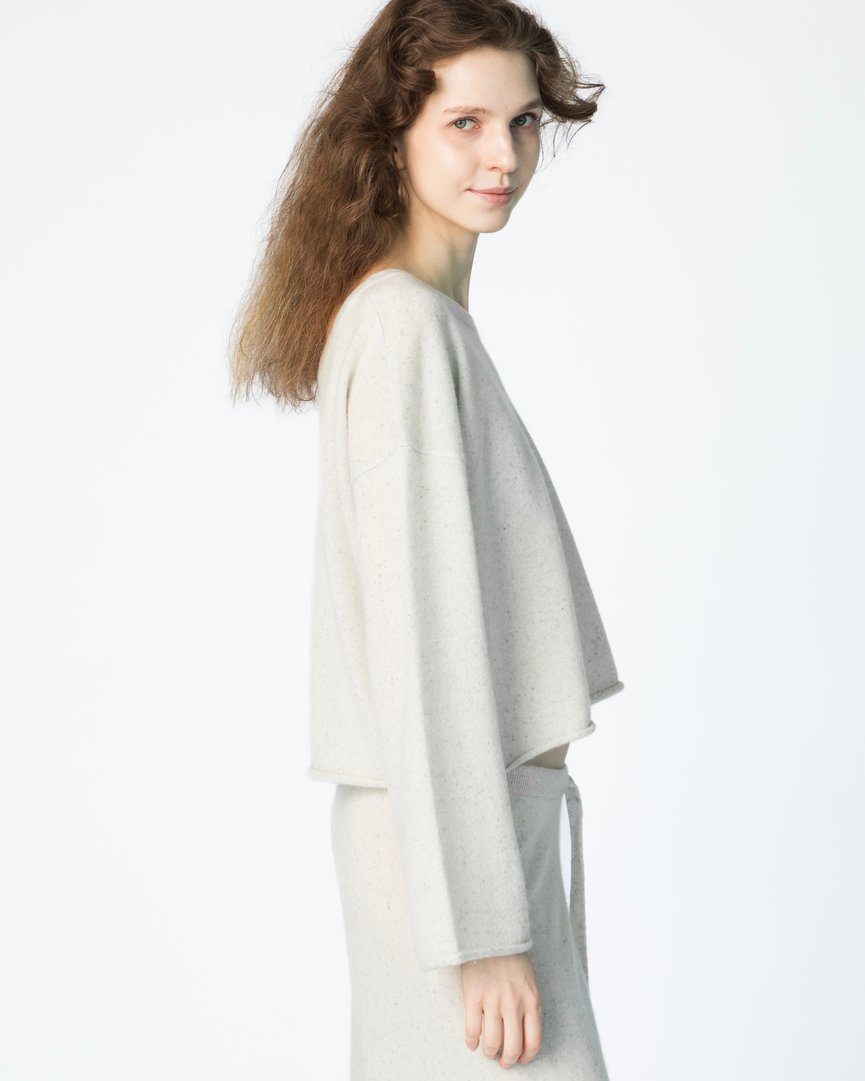 Le Crop Cashmere Sweater - Snow Speckle