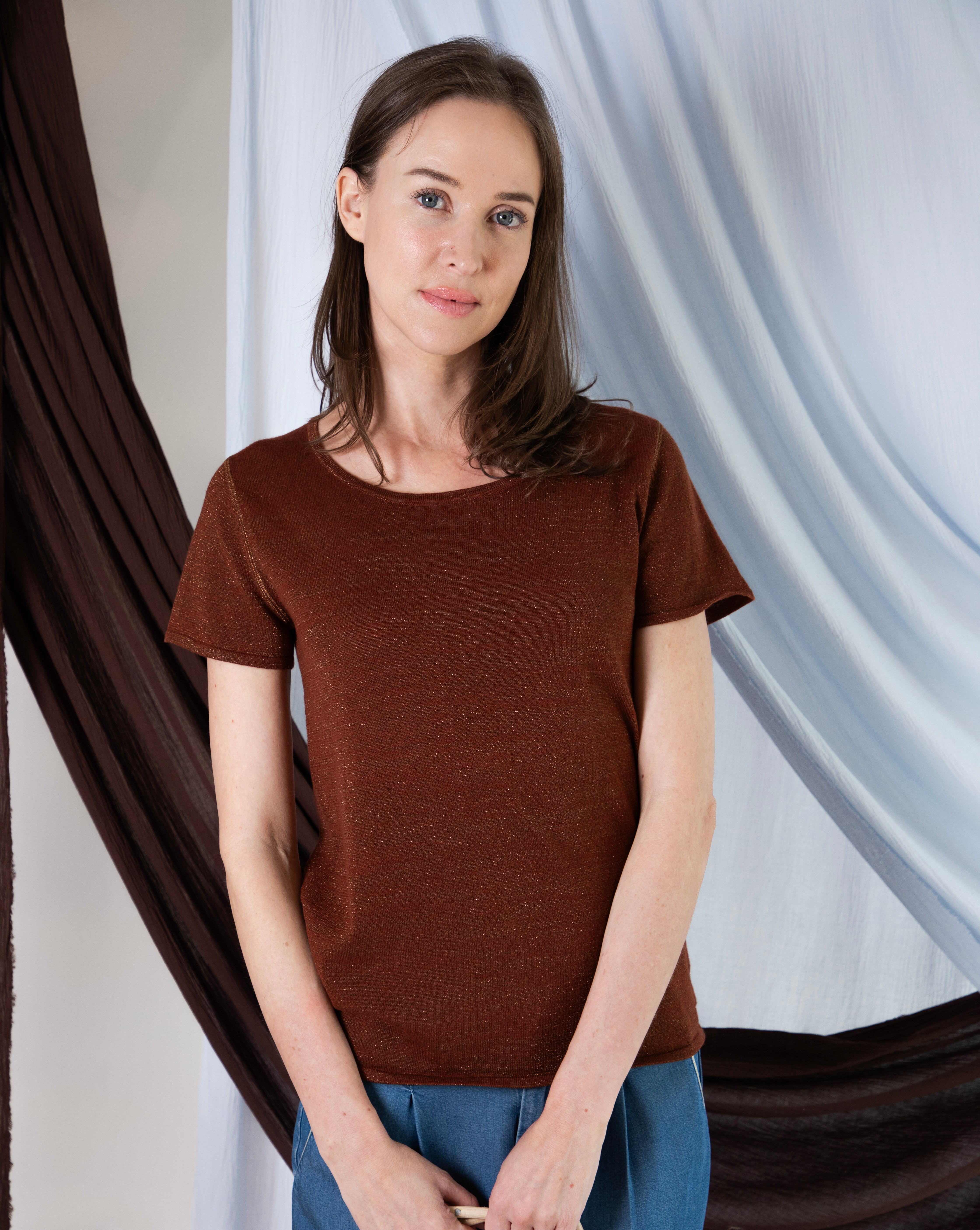 Marcelle T-Shirt (Round Neck) - Sierra Brown Shimmer