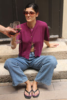 - Collared Top- Button closure- Knitted Cotton x LinenThe first model is 172cm and wears free size.