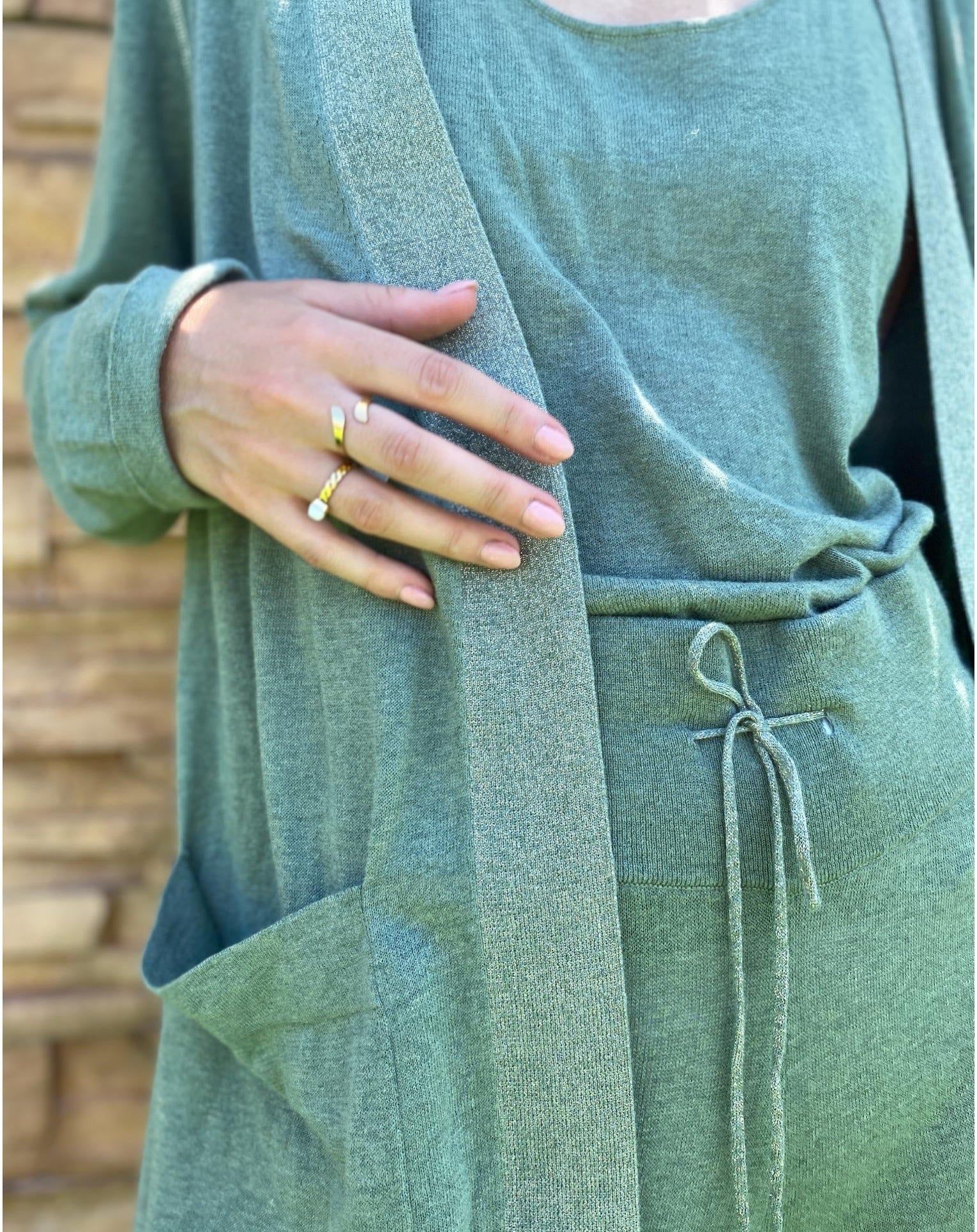 – A soft and stylish cardigan with lurex details on the neckline and belt