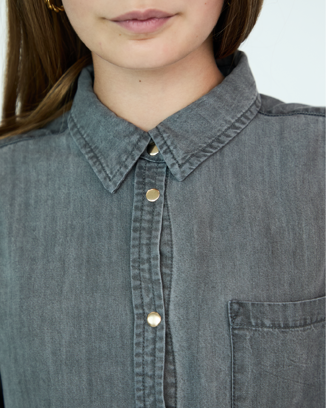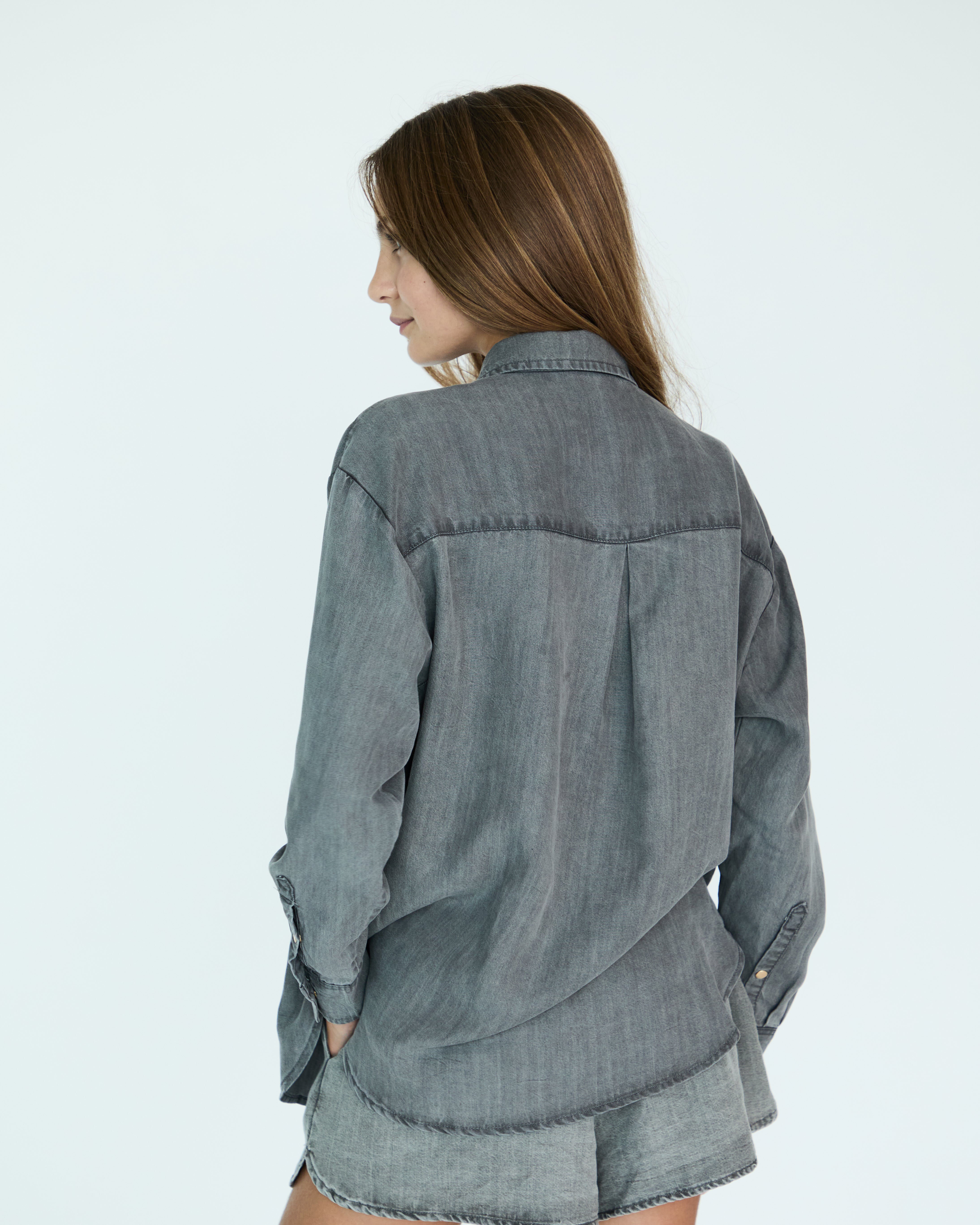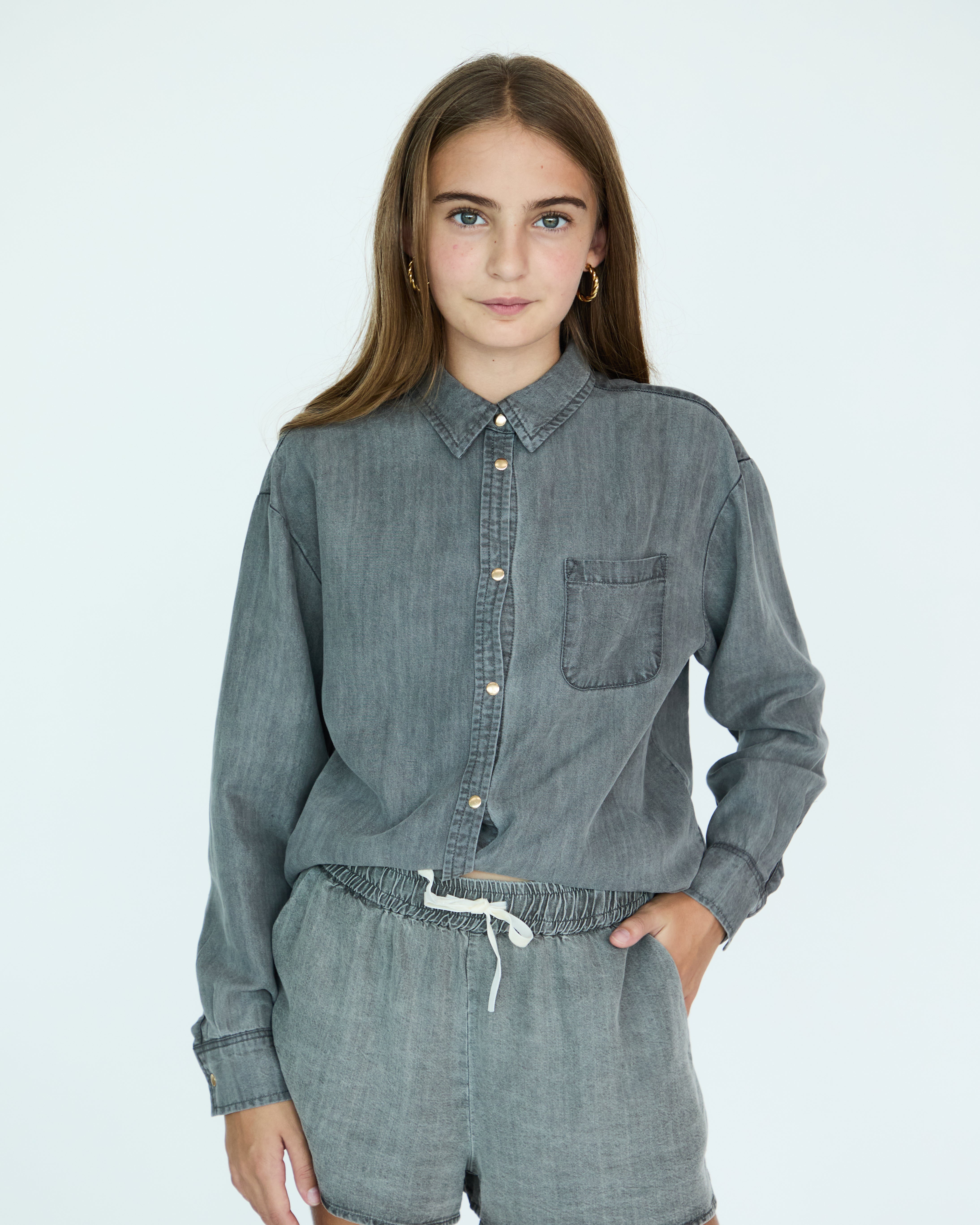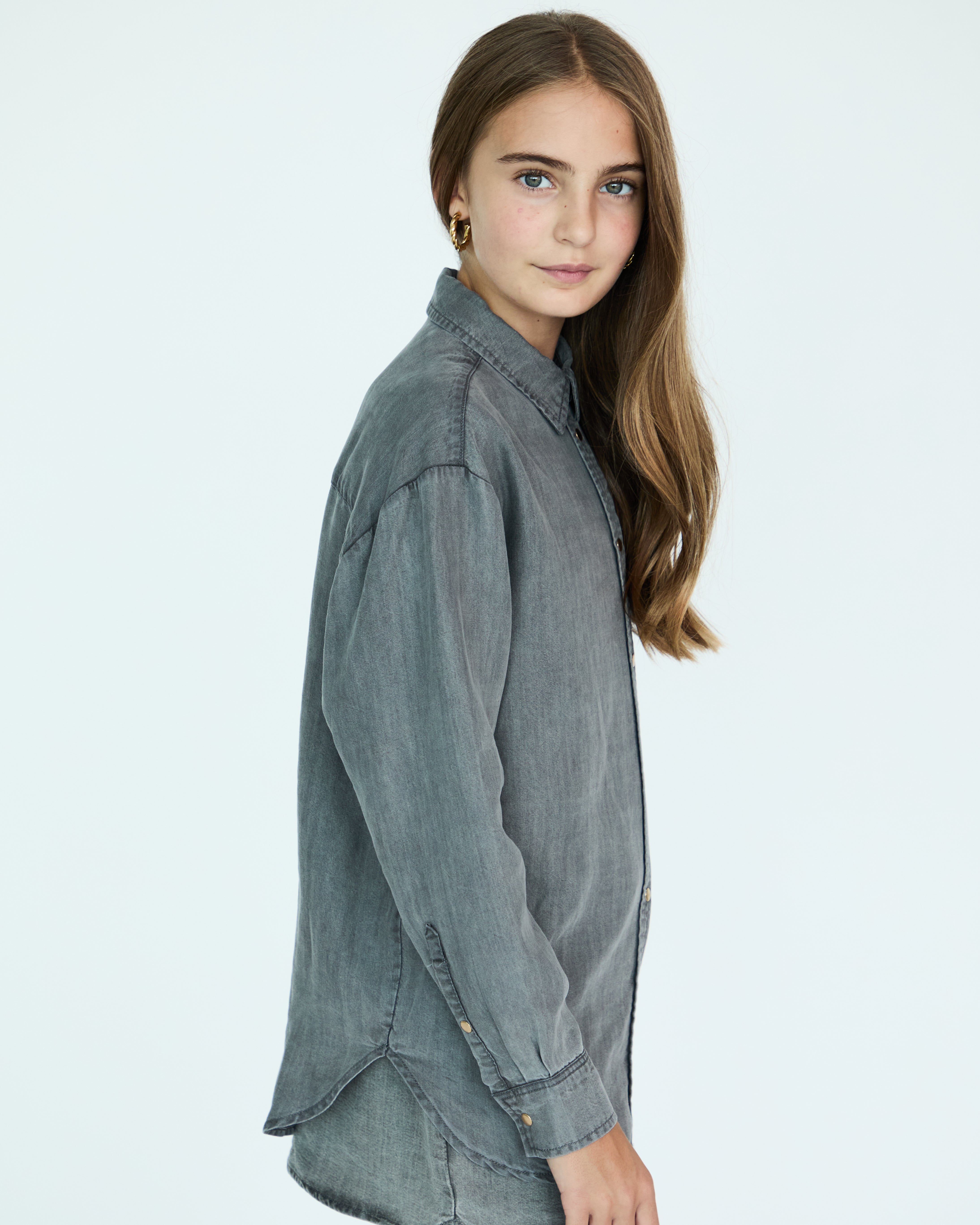 Girl Jules Oversize Shirt - Grey Chambray
