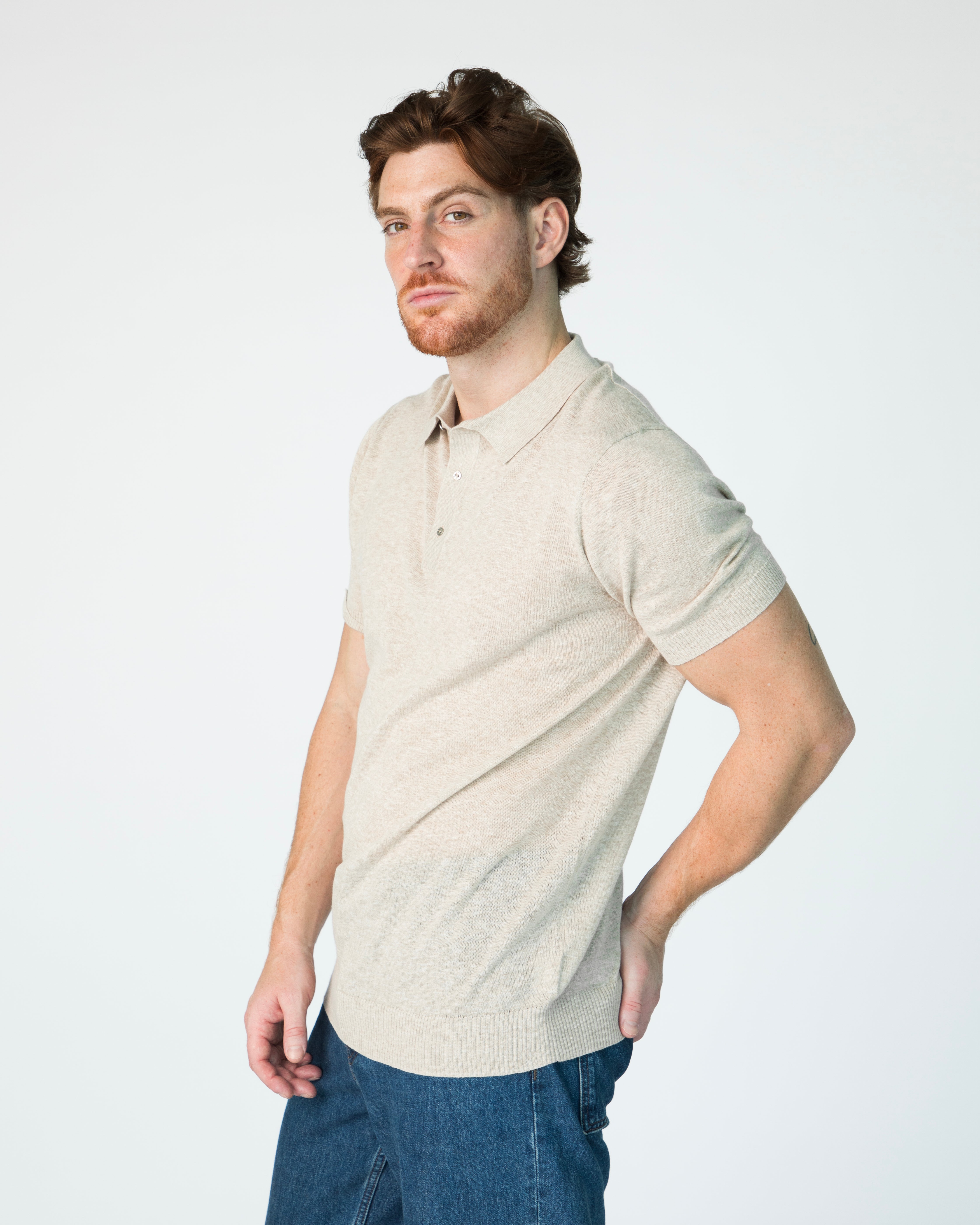 - Short sleeves with polo collar